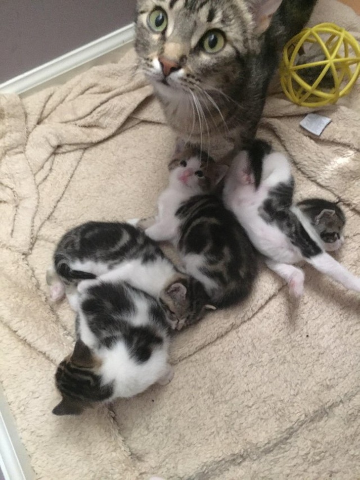"Побачивши цю беспритульницу, я впросила чоловіка "вдочерити" її як можна швидше. Як тільки ми привезли її додому, вона народила 4 кошенят. Тепер чоловік називає її троянським котом".