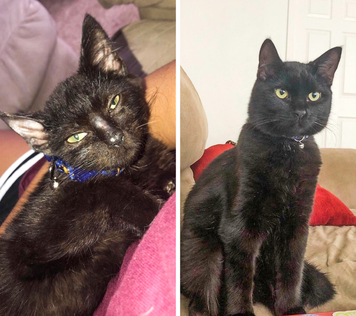 "Хтось капнув на нього гарячим клеєм, який спалив шерсть на носі і вухах. У притулку сказали, що лисини не заростуть, але мені було все одно. Це мій малюк через 5 місяців".