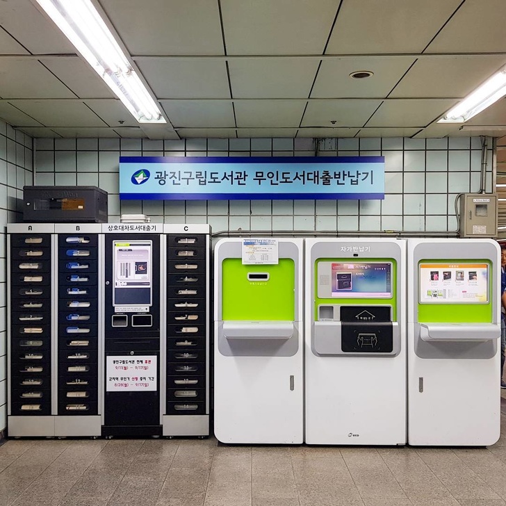 На станції метро коштує бібліотека. Тут можна зареєструватися за допомогою ID-карти і вибрати книжку, щоб почитати в дорозі