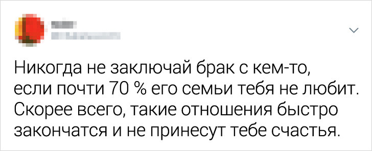Якщо б я могла повернутися в минуле, я б порадила собі не витрачати час на чоловіків, яких «важко розуміти». Їх не було складно розуміти — я просто була їм нецікава. Твій чоловік обов'язково дасть тобі знати, що хоче бути поруч. А якщо ні, рухайся далі. © Jaya Pillai / Quora