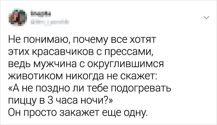 Тато бачив фотографії цієї дівчини і знав, що вона неадекватна, хоча особисто жодного разу з нею не зустрічався. Він поплескав мене по спині і сказав: «Слухай, друже. Я знаю, ти закоханий, але дозволь дати тобі одну пораду. Ніколи не влюбляйся в красиві сиськи. Коли вам буде сорок, вони все одно опустяться до колін. Краще полюби прекрасну особистість, а потім дай їй грошей на гарні цицьки». © Austin Gillis / Quora