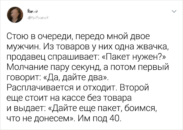 Стою в черзі в магазині, ззаду проштовхується молода дівчина з донькою років 5, збиває мій кошик з сирками і йде далі. Маленька дівчинка зупиняється і починає допомагати збирати їх, при цьому кажучи мені: "Вибачте, будь ласка, мою маму сьогодні на роботі образила "відьма"". Я посміхнувся і сказав: "Нічого страшного", — і попросив встати до мами ближче. © Vaalimusic / Pikabu