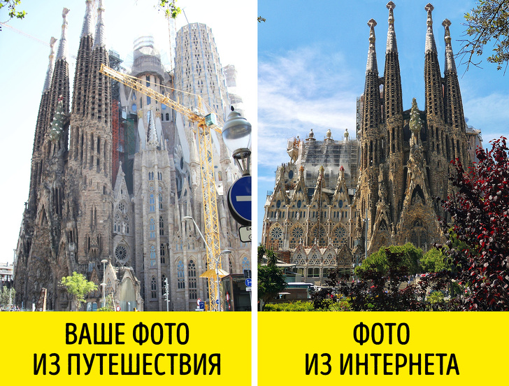 Вашим друзям буде набагато цікавіше подивитися знімки, де присутні ви самі. А Ейфелеву вежу і храм Саграда Фамілія краще побачити вживу, ну або хоча б на професійних фотографіях. Таких в інтернеті дуже багато.