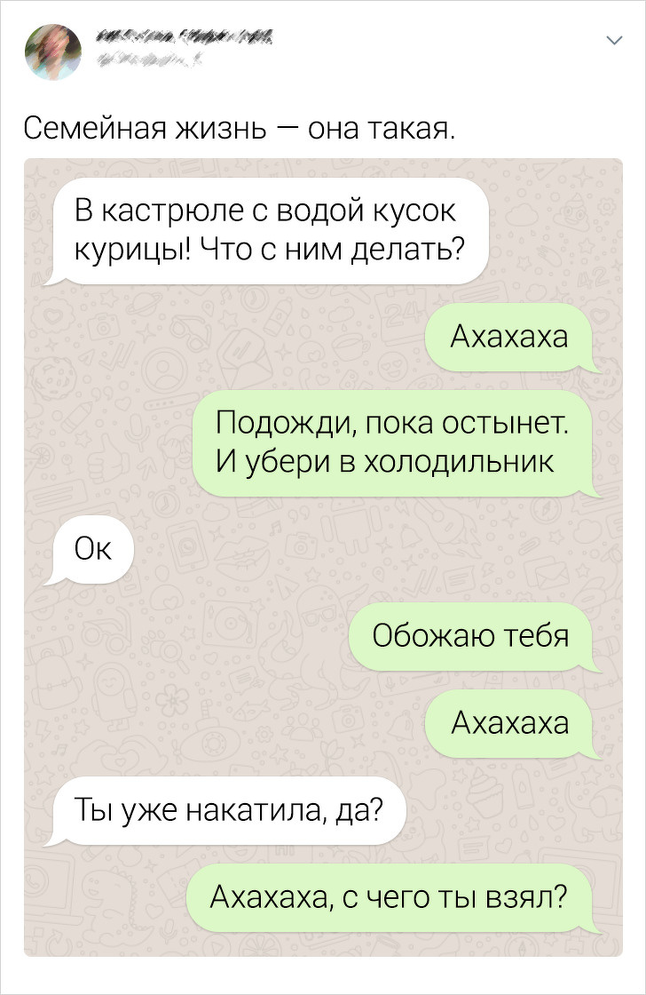 - Коли ви одружитеся на кого-то з таким же почуттям гумору, як у вас, потрібно бути готовим до наслідків. Наприклад, я попросив дружину надіти річ, яку я ще не бачив, і вона вийшла в моєму одязі для спортзалу. © Social_Mime / twitter