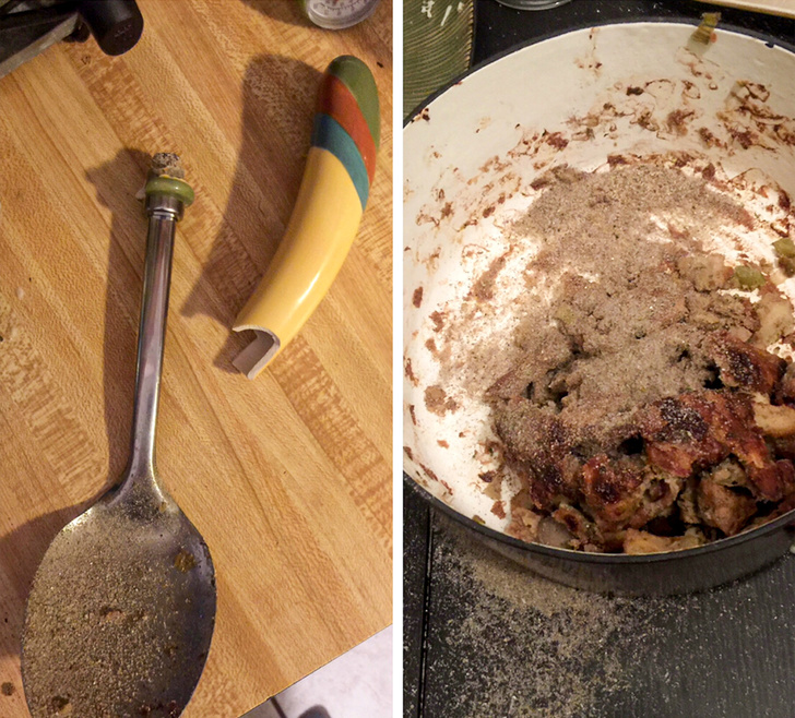 «Ручка моєї сервірувальної ложки зламалася, і виявилося, що вона була сповнена піску. Це зіпсувало залишки мого чудового фаршу з індички»