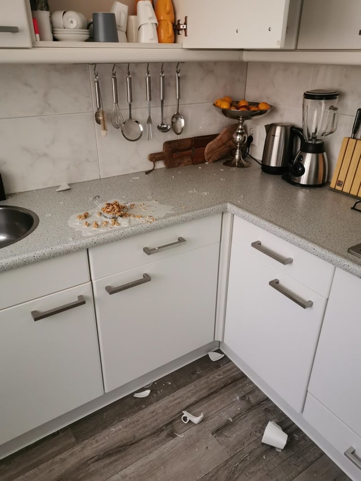 «Сьогодні зранку моя кавова чашка випала з шафи і впала прямо на тарілку з пластівцями»