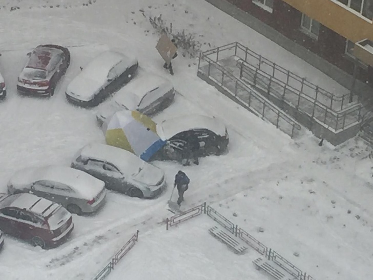 Хлопець розбив намет над капотом, щоб робити ремонт навіть в снігопад