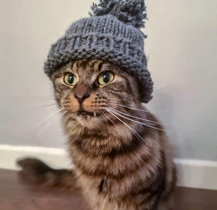 «Жінка зв'язала свою першу шапку, але трохи не вгадала з розміром. Зате вона ідеально підійшла нашому котові»