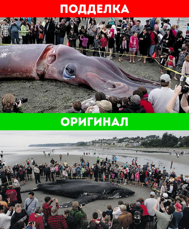 У березні 2015 року в мережі з'явилася новина про гігантському кальмарі, якого викинуло на берег пляжу Пункайки в Новій Зеландії. Фотографія виявилася черговою жертвою майстрів фотомонтажу. Оригінальний знімок був зроблений в червні 2012 року на пляжі Уайт-рок (Британська Колумбія, Канада), куди викинуло горбатого кита. Місцеві жителі намагалися врятувати тварину, але спроби виявилися безуспішними.