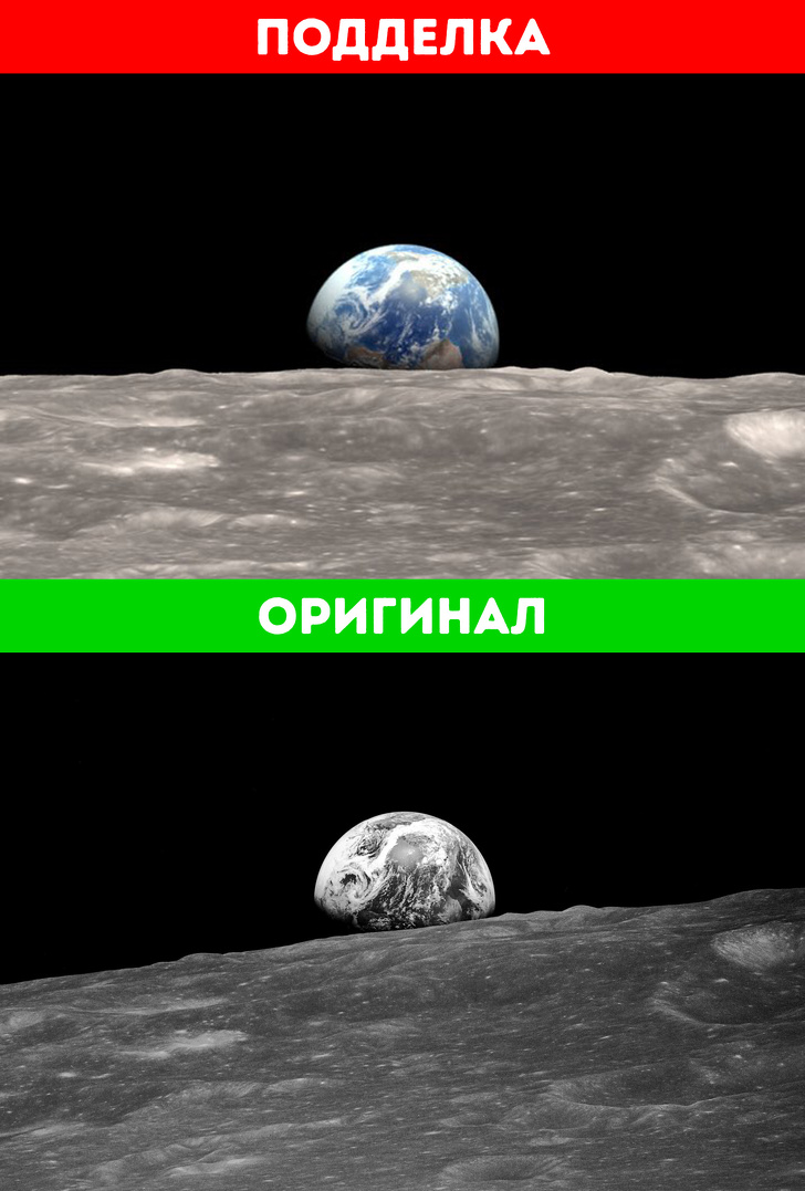 Як і у випадку зі знімком Індії, в соцмережах поширена кольорова фотографія сходу Землі. Оригінальний знімок з Apollo 8 був зроблений в 1968 році і є чорно-білим, а не кольоровим.