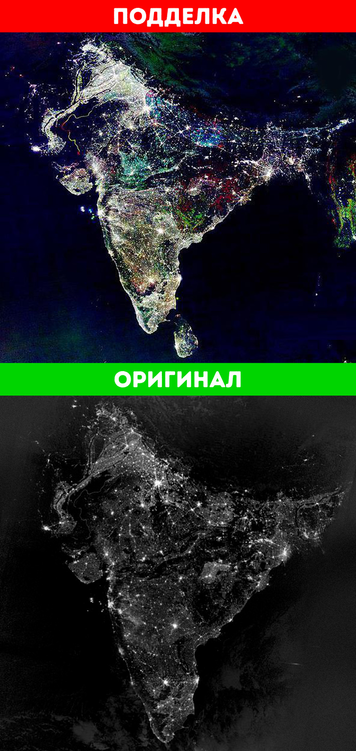 Кольоровий знімок з супутника розійшовся по соцмережам з підписом: «Ось як виглядає Індія з космосу в ніч Дівалі». Після цього NASA опублікувало оригінальні чорно-білі знімки, уточнивши, що зображення було розфарбоване в 2003 році вченим Крісом Элвиджем, щоб показати, як змінилося освітлення над Індією з 1992 року.