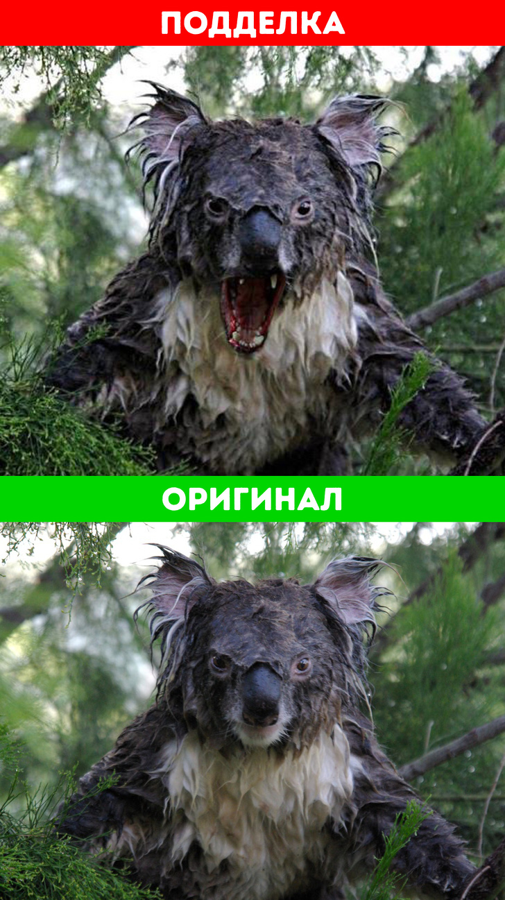 Оригінальна фотографія мокрою коали з'явилася в мережі в 2009 році. З тих пір багато жартують, що тварину на фото виглядає як персонаж з фільму жахів. Звичайно, знайшлися й ті, хто захотів підлити масла у вогонь. Черговий майстер фотомонтажу жартома додав на фото собачу щелепу, щоб тваринка стала виглядати ще страшніше.
