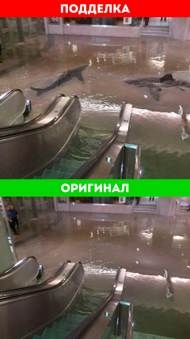 У 2012 році в соцмережах поширилася шокуюча новина про випадок в Кувейті. Зал наукового центру був затоплений після того, як розбився резервуар з акулами. Насправді фотографія не має ніякого відношення до Кувейту. Цей знімок був зроблений на залізничній станції в Торонто, коли під час ремонтних робіт в каналізацію прорвало трубу.