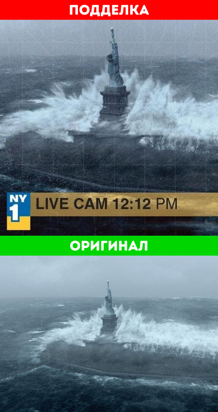 Вірусні фотографії поширюються по мережі з божевільною швидкістю. Знавці своєї справи давно з'ясували, що повинно бути на фотографії, щоб привернути до неї максимум уваги. У 2012 році В мережі з'явилася фотографія статуї Свободи під час буревію «Сенді», яка виглядала як скріншот з каналу новин. Знімок навів багато шуму, але виявилося, що кадр взято з художнього фільму.
