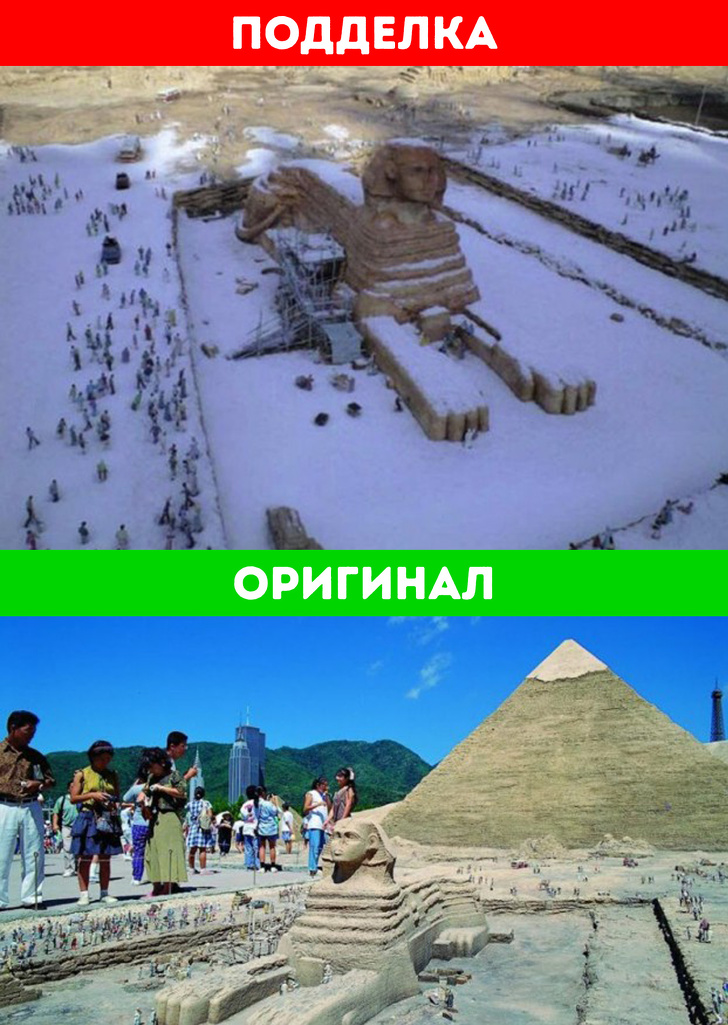 Фотографію з засніженим Великим сфінксом багато користувачі розміщували на своїх сторінках в соцмережах як приголомшливу новину: «Перший за 112 років снігопад в Каїрі». Але фотографія не має до Єгипту ніякого відношення, так як була зроблена в тематичному парку Tobu World Square в Японії.
