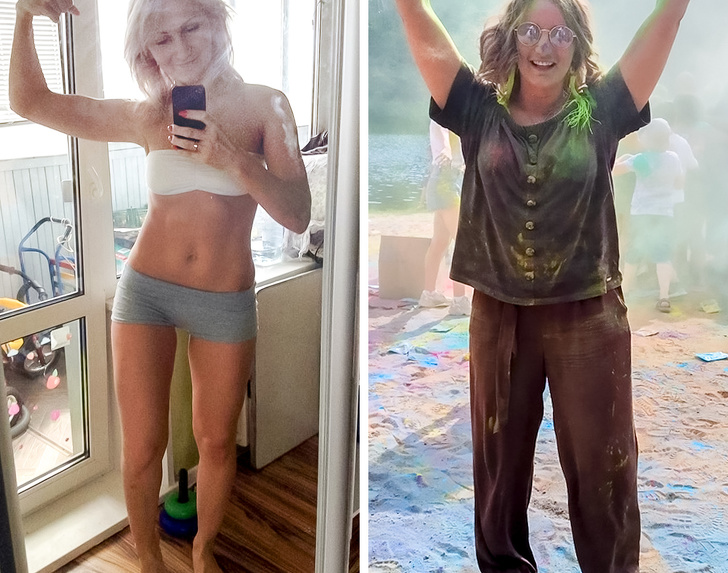 19. «Всі пишуть, як схудли на 30, 50, 100 кг. Молодці! Але ніхто не пише, як він героїчно розжирів. Я буду першою! Я змогла! Зліва — 2017 рік, 55 кг, праворуч — 2019-й, 80 кг»