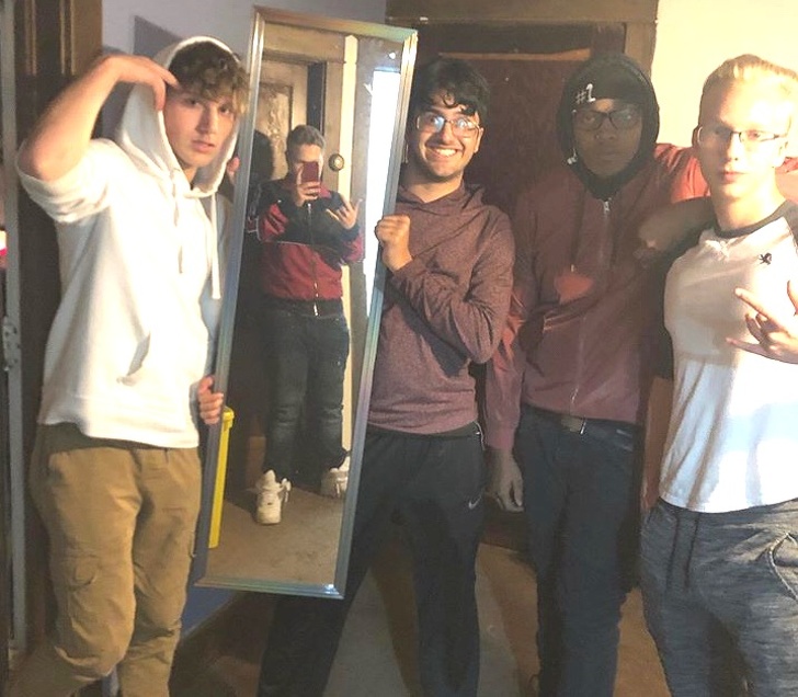 7. Парубки знайшли спосіб зробити так, щоб друг-фотограф теж потрапив в кадр