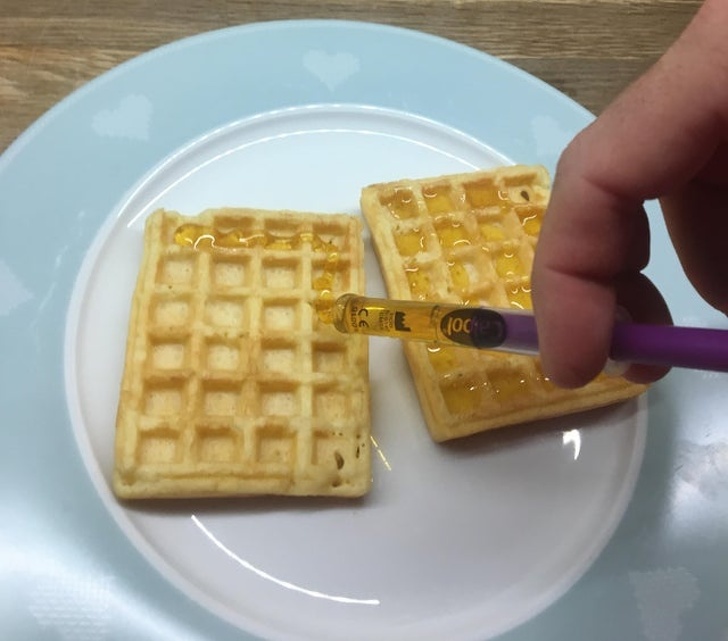 15. «Нарешті знайшов застосування для шприців, які займають цілий ящик. 5 мл — ідеальне кількість сиропу для вафлі»