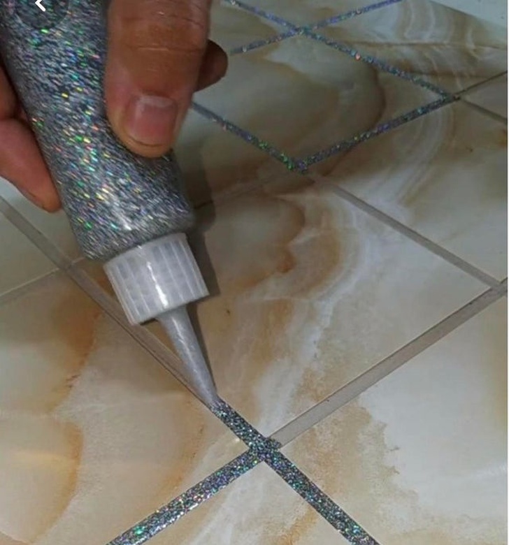 12. Розчин в стиках між плитками у ванній виглядає нудно і неоригінально? Замажте його клеєм з блискітками