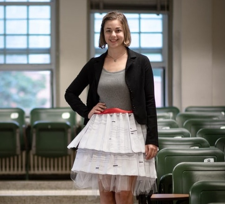 16. Дівчина захистила кандидатську дисертацію в спідниці, яку вона зробила з листів з попередніми відмовами