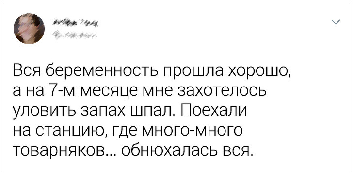 - У відділі пиломатеріалів стояв такий чарівний запах, що я вагітна, готова була залишитися там на ПМЖ. Я обіймала брус. Мій багатостраждальний і героїчний чоловік мені його таки купив. Але вдома він вже так не пах. Мені потрібно було багато бруса, щоб пахло, як у магазині. Після пологів як відрізало. © Aginskaiy / Pikabu