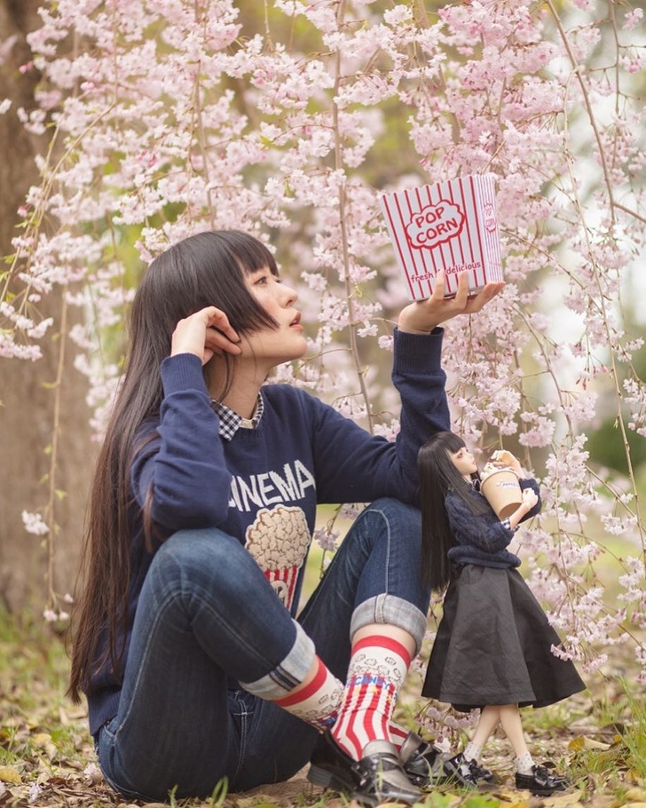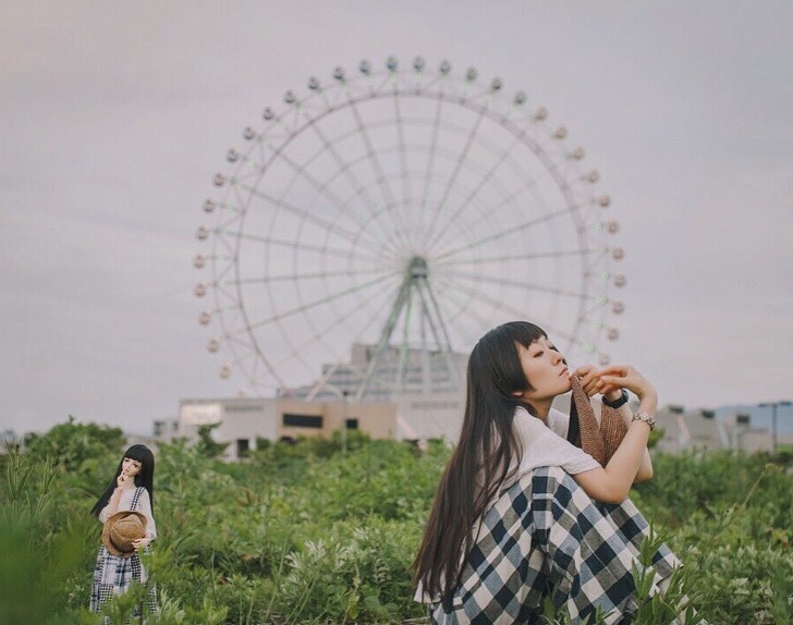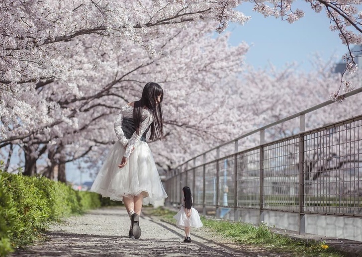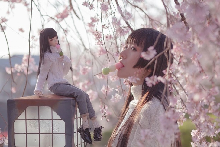 Модель зі своєю міні-копією подорожує по Японії і створює чарівні образи і знімки