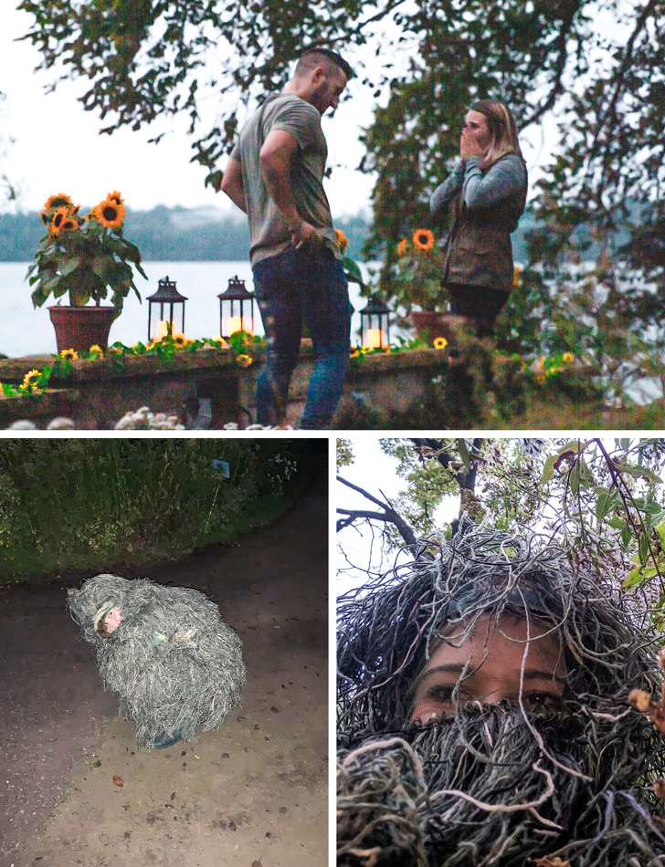 1. «Сестрі на вихідних зробили пропозицію, тому я замаскувалася під кущ, щоб зафіксувати цей момент. Між нами рік різниці, і чому наші життя такі різні?»