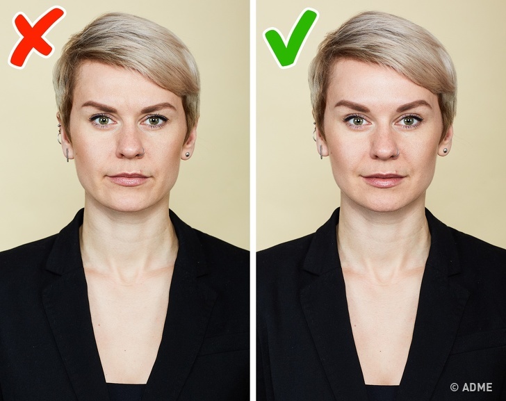 Набагато сильніше, ніж відсутність посмішки, фото можуть зіпсувати насуплені брови. Щоб цього не трапилось, спробуйте злегка їх підняти, наче вас щось приємно здивувало. Цей метод зробить ваш погляд більш відкритим. Головне, не перестаратися, щоб не виглядати так, ніби ви тільки що пережили шок.