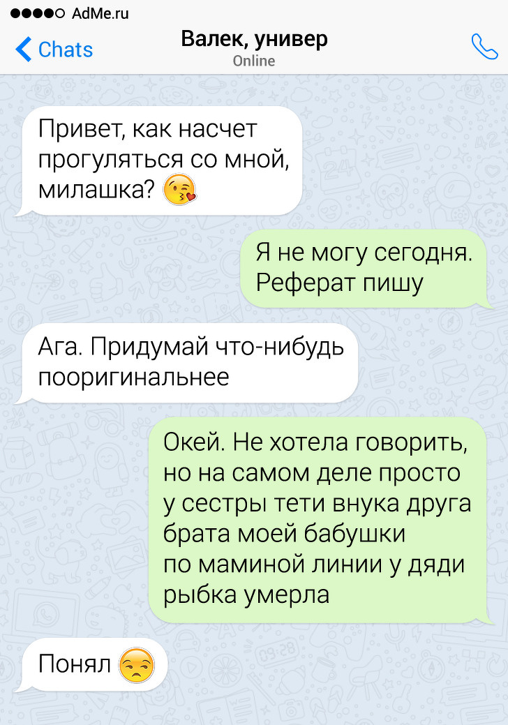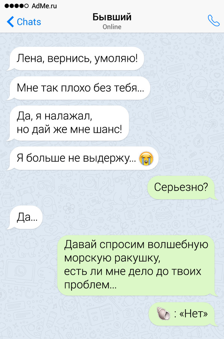 А як ви зазвичай відповідаєте своїм поверненцям або надто наполегливим шанувальником? Може бути, у вас збереглися скріни найбільш пам'ятних діалогів?