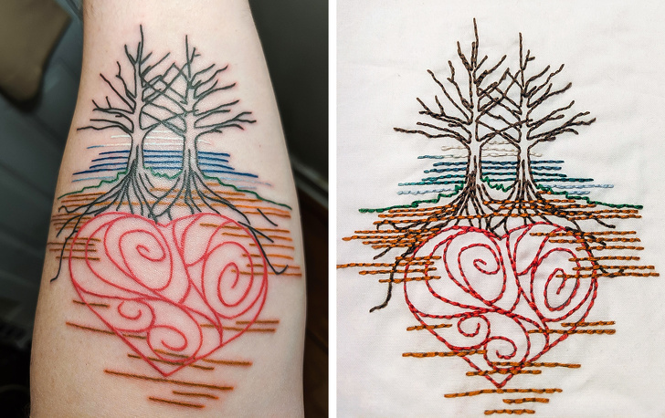 «Зробив цю татуювання на згадку про дружину. Вона вишила схожий малюнок, коли була жива»