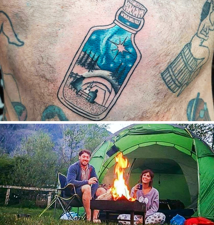 «Подарувала хлопцеві тату на Різдво і не сказала, яким буде дизайн. Я попросила майстра намалювати наше фото з походу в пляшці із зоряним небом»