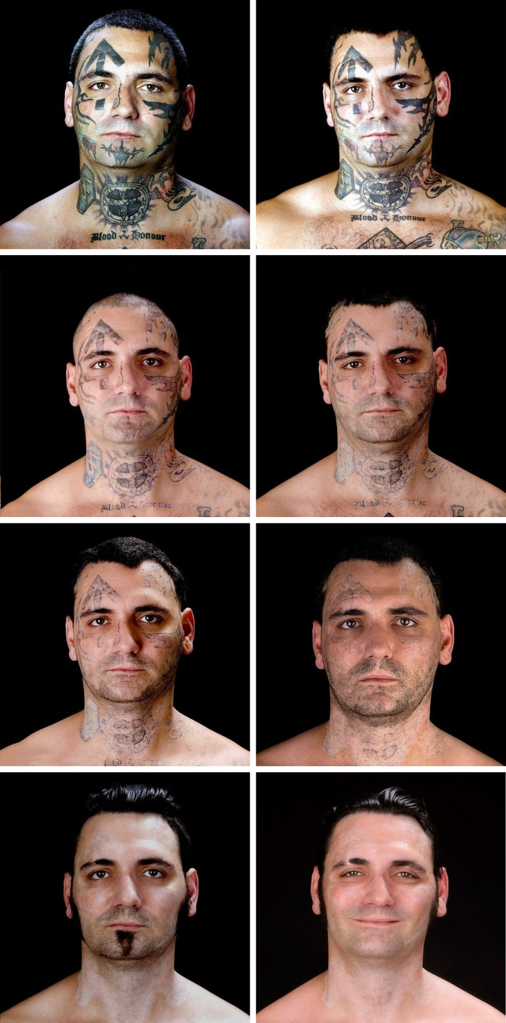 Бонус: іноді татуювання, навпаки, перестають бути важливими. Колишній скінхед видалив всі свої расистські тату з особи, після того як став татом