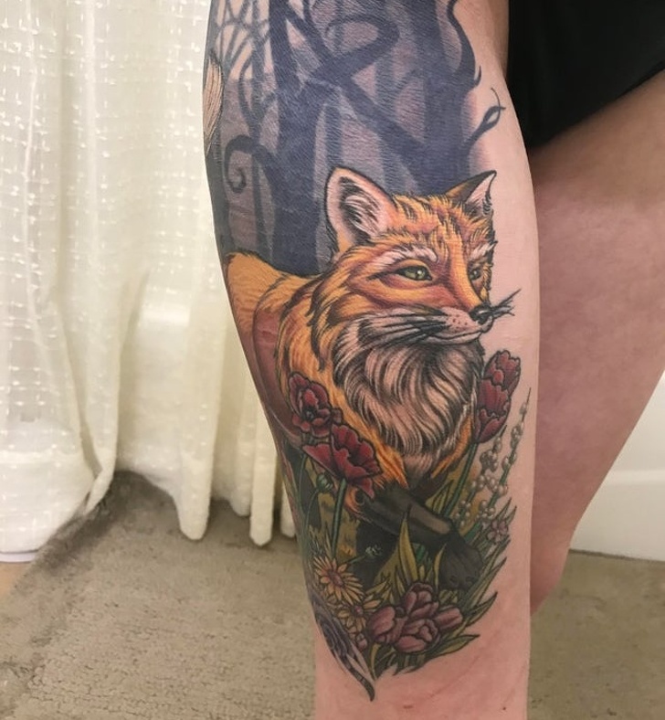 «У 16 років я пообіцяла собі, що якщо цілий рік не буду завдавати собі рани, то зроблю тату, щоб закрити шрами. У 19 років я набила своє тотемна тварина, яка залишає темний ліс і виходить на гарний луг»