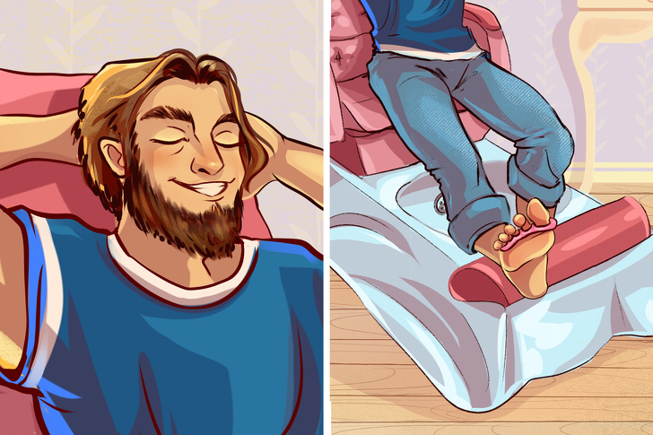 - Коли моя дружина їде з міста і у мене є ніч тільки для себе, я часто подовгу приймаю гарячу ванну з піною, потім користуюся засобами своєї дружини для догляду за шкірою, одягаю халат і п'ю хороший трав'яний чай за переглядом старого фільму. Дружина не знає про це. Чекаю не дочекаюся, коли вона одного разу повернеться раніше і виявить, що її чоловік влаштував собі спа-день, щоб розслабитися. © Billionairez