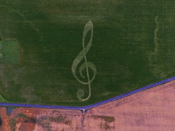 12. Дрон виявив величезний скрипковий ключ в поле. Виявилося, це інсталяція до фестивалю класичної музики