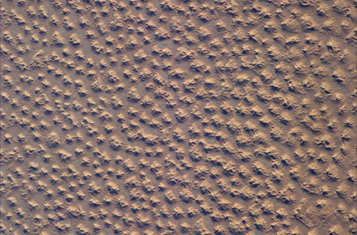 Це фото опублікував у своєму твіттері астронавт Лука Пармитано. Чоловік розповів, що відобразив з висоти піщані дюни. Ось тільки читачі прийшли в подив: адже здається, що на знімку зображені швидше піщані ями, а не дюни. Проте один з користувачів вирішив спробувати перевернути зображення.