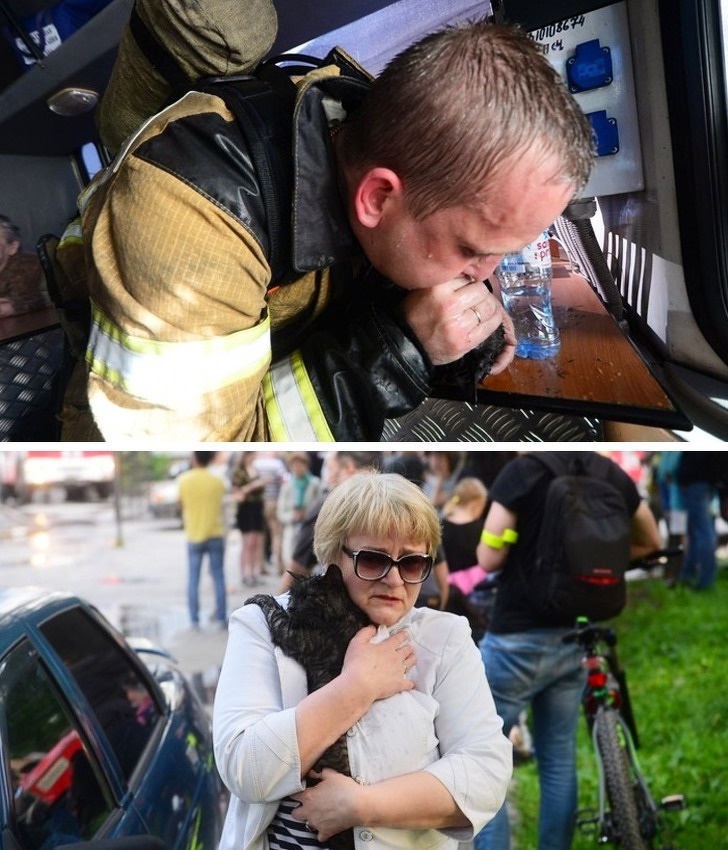 Співробітник МНС зробив штучне дихання кішці, яка постраждала від пожежі, і врятував її