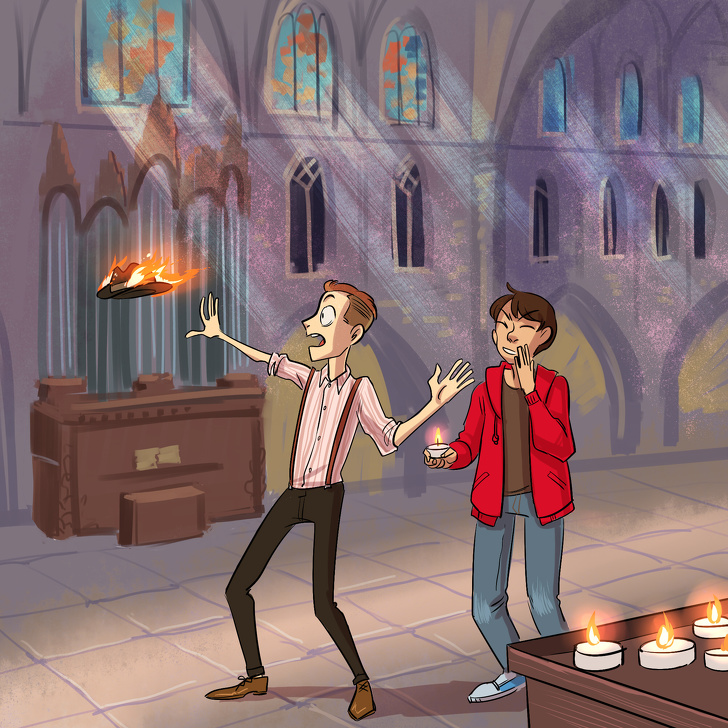 - Я працюю в Національному соборі, і одного разу один турист взяв церковну свічку і нишком підпалив капелюх свого друга. Той помітив, тільки коли вже майже загорілися його волосся. Від переляку він метнув свою палаючу капелюх орган. not_hacking12 / Reddit