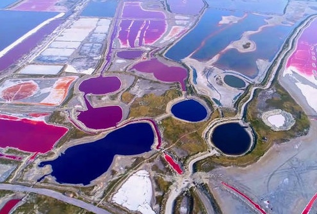 Озеро Яньху перетворилося в різнокольорові басейни. З-за спекотної погоди водорості почали швидко розмножуватися