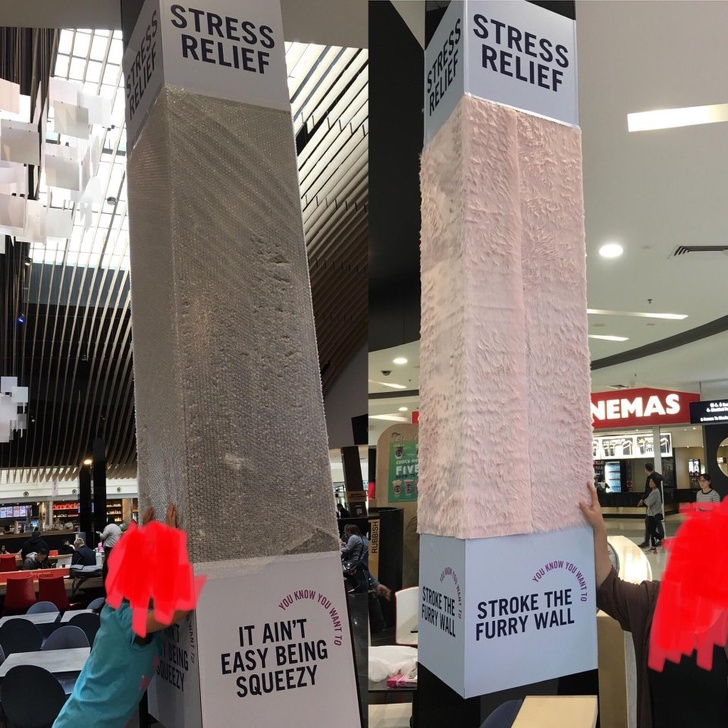 Фуд-корт в торговому центрі в Родосі (Сідней, Австралія) пропонує бульбашкову плівку і пухнасту стіну для зняття стресу