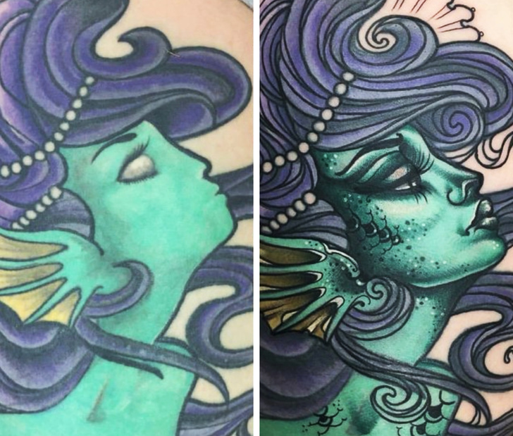 Не кожен майстер татуювання здатний зробити шедевр. Герої нашої добірки, отримавши дійсно жахливий результат, не розгубилися, а звернулися до митців, яким виявилося під силу виправити помилки попереднього майстра. І тепер від їх робіт очей не відвести.