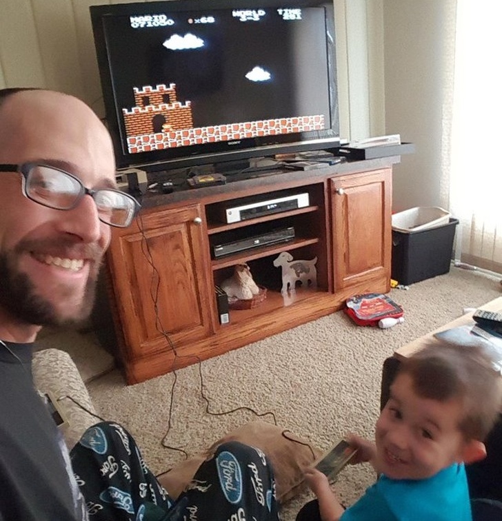 «Продав всі нові консолі, щоб звести кінці з кінцями під час слухань по опіці. Добре, що батькова стара Nintendo все ще працює. Син любить Mario»