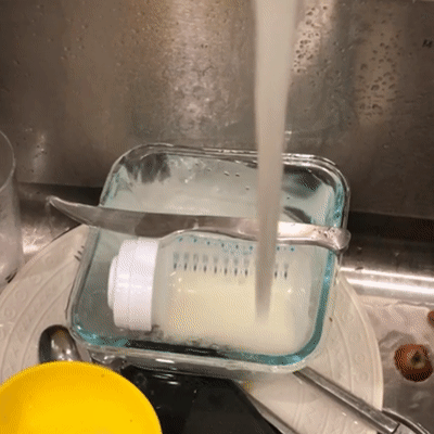 Грілка для пляшечки зламалася, так що довелося згадати стару школу