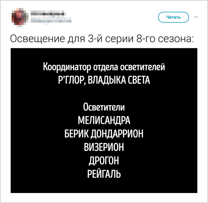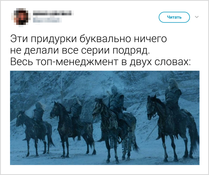 «Гра престолів» — головний серіал планети, який, немов вірус, охоплює все більшу кількість людей: так, першу серію фінального сезону подивилося 17,4 млн осіб. Таке потужне культурне явище не могло не породити безліч теорій, суперечок і жартів, наприклад про те, як сир Давос не втримався і надів намисто Мелісандри, а Бран під час битви за Вестерос перемістився в кінотеатр на прем'єру «Месників».
