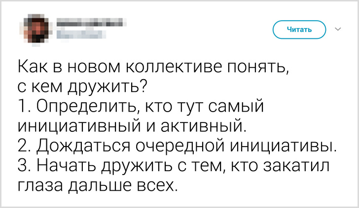 - Була у нас колега, яка постійно спізнювалася на півгодини. Щоранку вона розповідала історії про пролитом на блузку кави, про пробки, про що перебігають дорогу котів і так далі. Одного разу вона зважилася: «Набридло спізнюватися, я занадто далеко живу. Треба просто переїхати ближче до роботи». Сказано — зроблено. Після переїзду дівчина радісно заявила: «Завтра чекайте мене вчасно!» На наступний день вона стала ближче до 12. Налила собі кави і задумливо пробурмотів: «А от сьогодні я просто проспала. Може, не у відстані справа?» MadTillDead / Pikabu