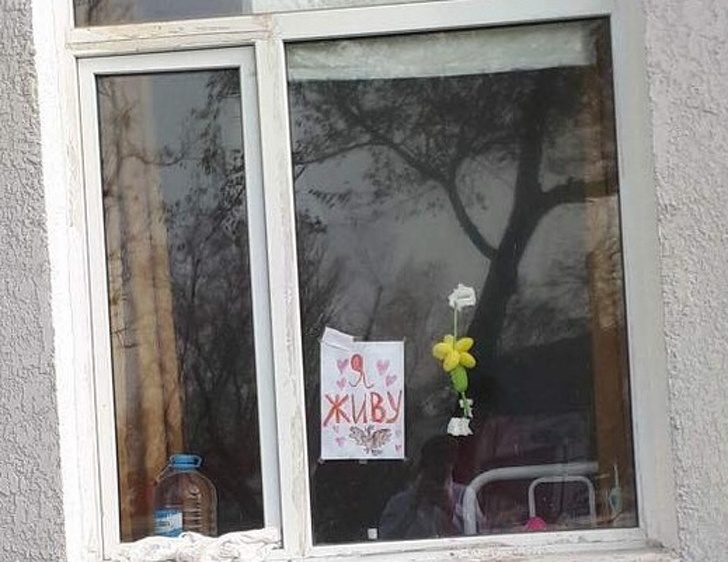 Малюнок на склі дитячої онкології в Бішкеку.