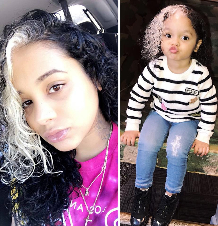 16. У мами і доньки однакова світла пасмо волосся з народження