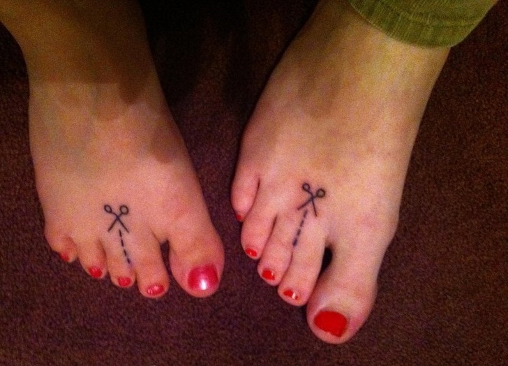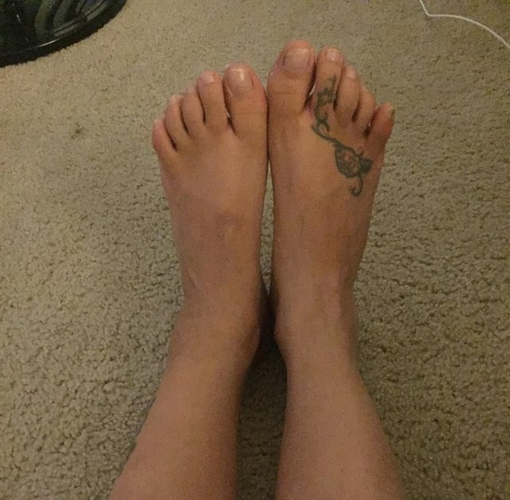 14. «Моя дружина і сестра виявили, що у обох зрощені пальці на ногах. Тоді вони вирішили відзначити цей факт однаковими татуюваннями»
