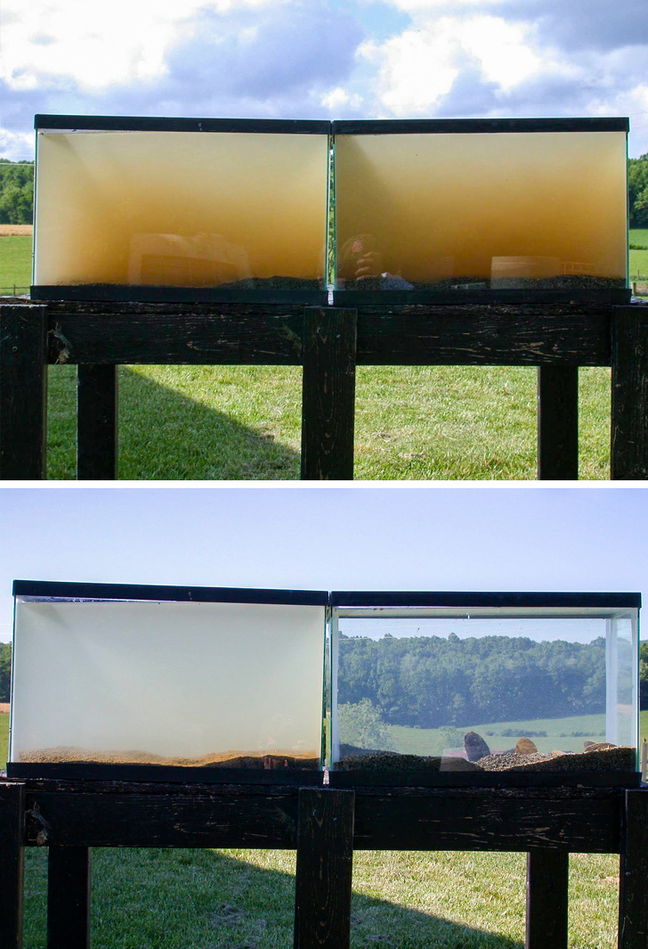 19. «Наповнив 2 акваріума водою з річки, потім у правий помістив мідій і залишив так на 24 години. Ось що з цього вийшло»