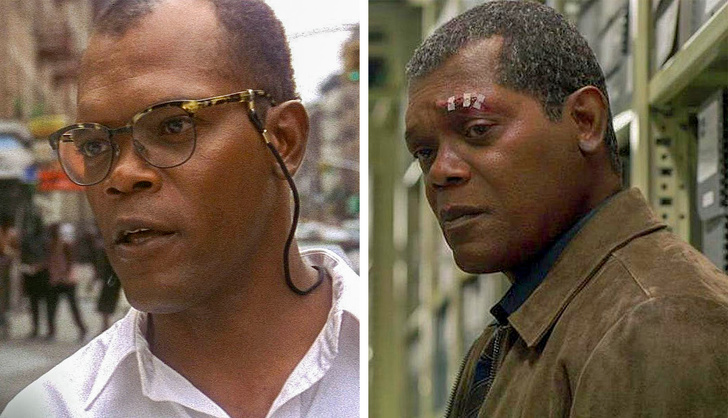 4. Семюел Л. Джексон в 1995 році, і він же у фільмі «Капітан Марвел», дії якого розвертаються в тому ж році